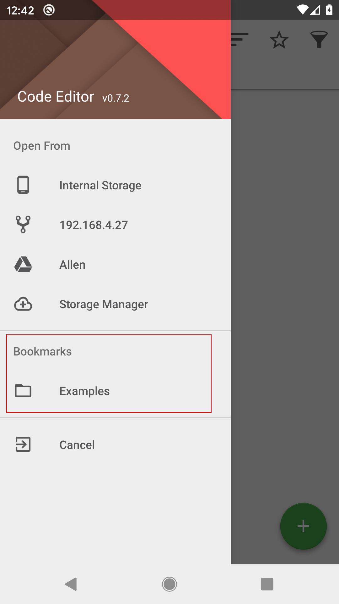 You can directly access bookmarks from file activity, navigation drawer, as following: