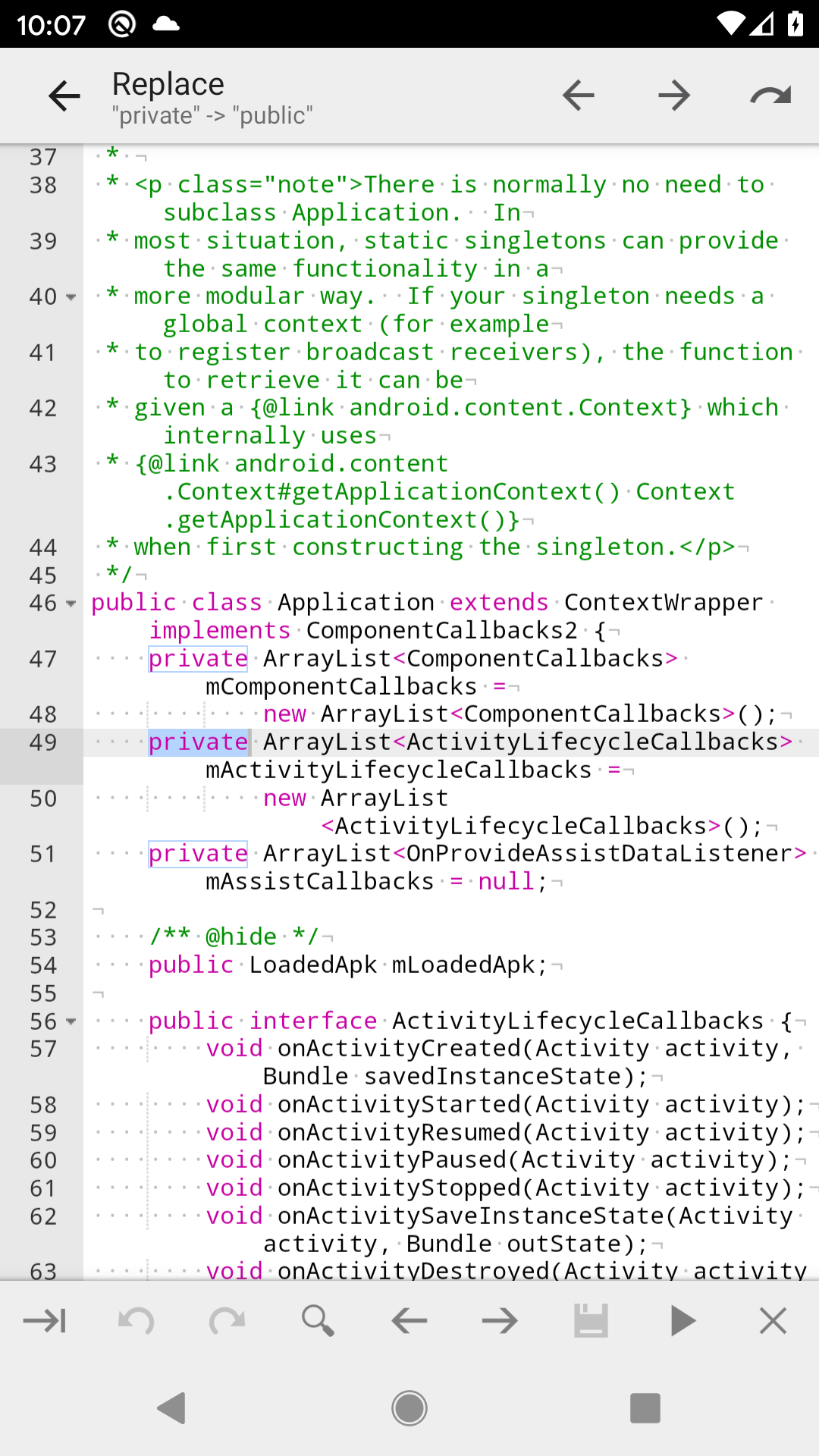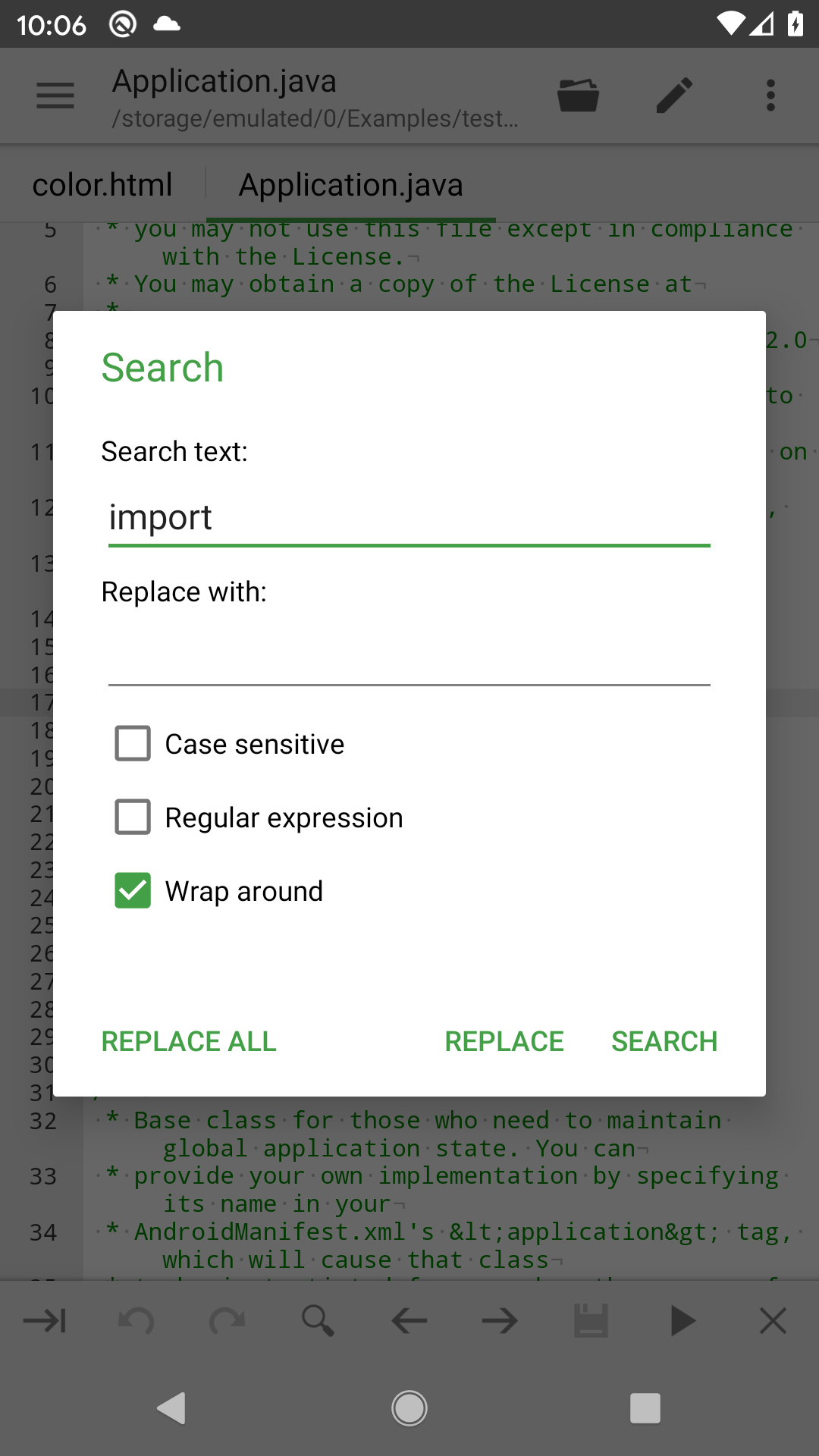 After you click "Search" or "Replace" from search dialog, Code Editor will enable search action mode as following: