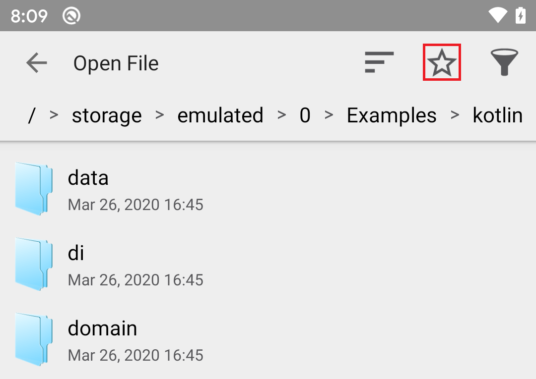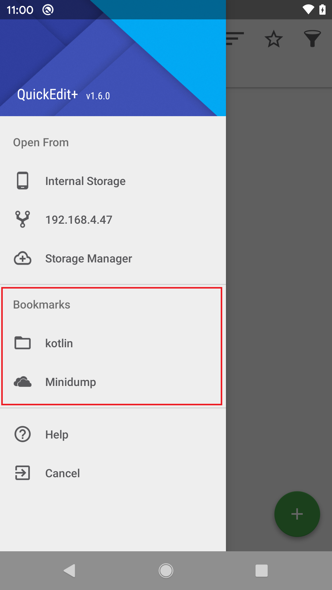 • You can directly access bookmarks from file activity, navigation drawer, as following: