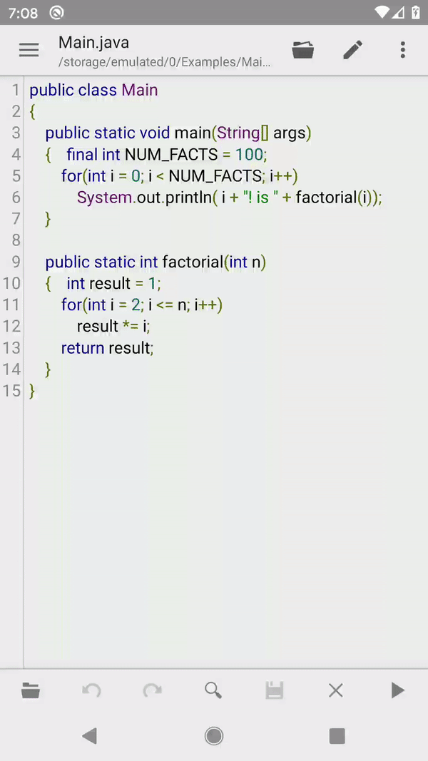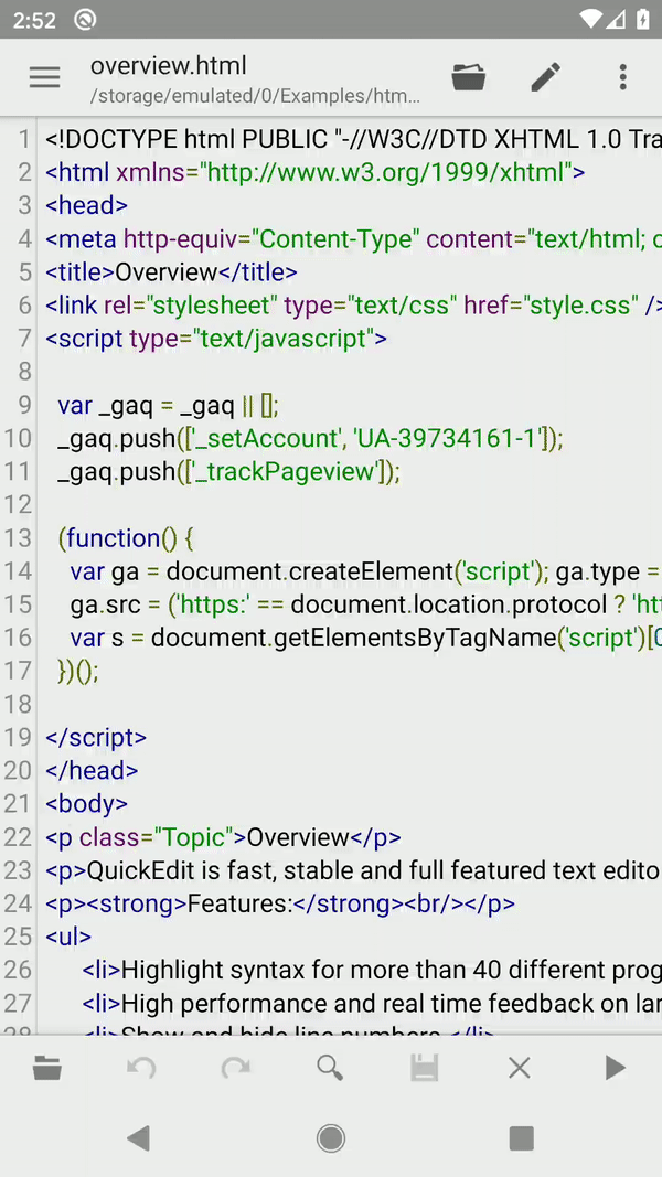 QuickEdit automatically detects the programming language based on the file extension, such as a *.py file for Python. If your file doesn't have an extension, you can manually select the syntax from the toolbar, and the execute button will also become available.